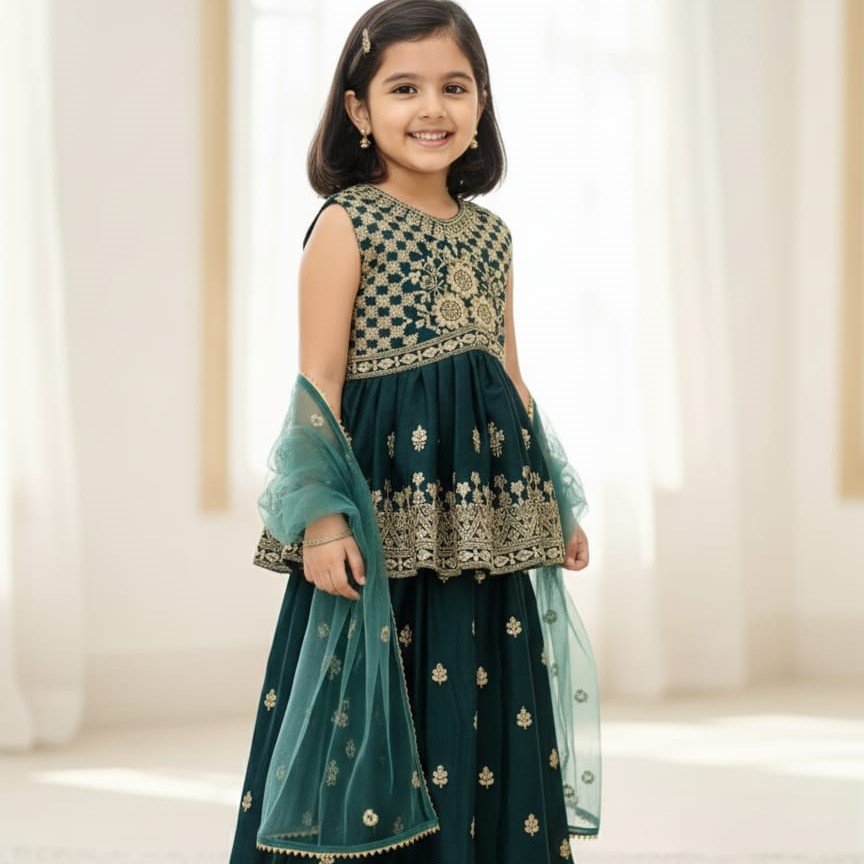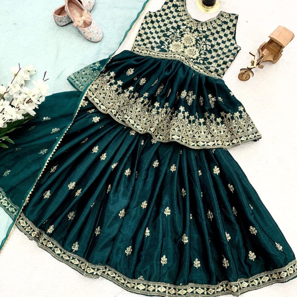 Kids Choli Palazzo Dress – Designer Chinon Silk Embroidery Set