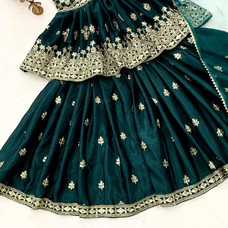 - Palazzo Fabric: Heavy Chinon Silk with Embroidery Sequins Work