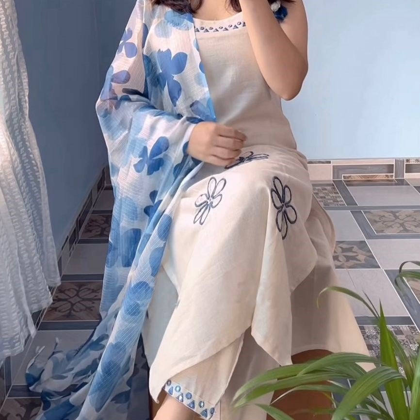 Elevate your ethnic wardrobe with this beautifully crafted Heavy Rayon Slub Suit Set featuring intricate embroidery work. This stunning 3-piece set includes a full-length top (44 inches+), matching pant (38 inches+), and a gorgeous Kota Checks Dupatta with Digital Print. Perfect for summer outings, festive occasions, and casual gatherings.