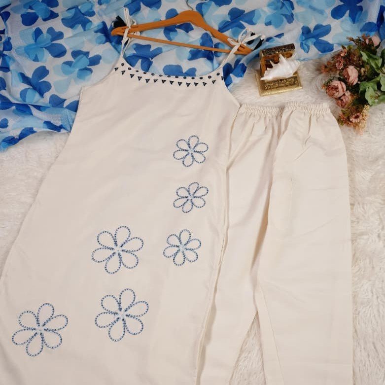 Be the first to review “Premium Rayon Slub Embroidery Suit Set With Dupatta”